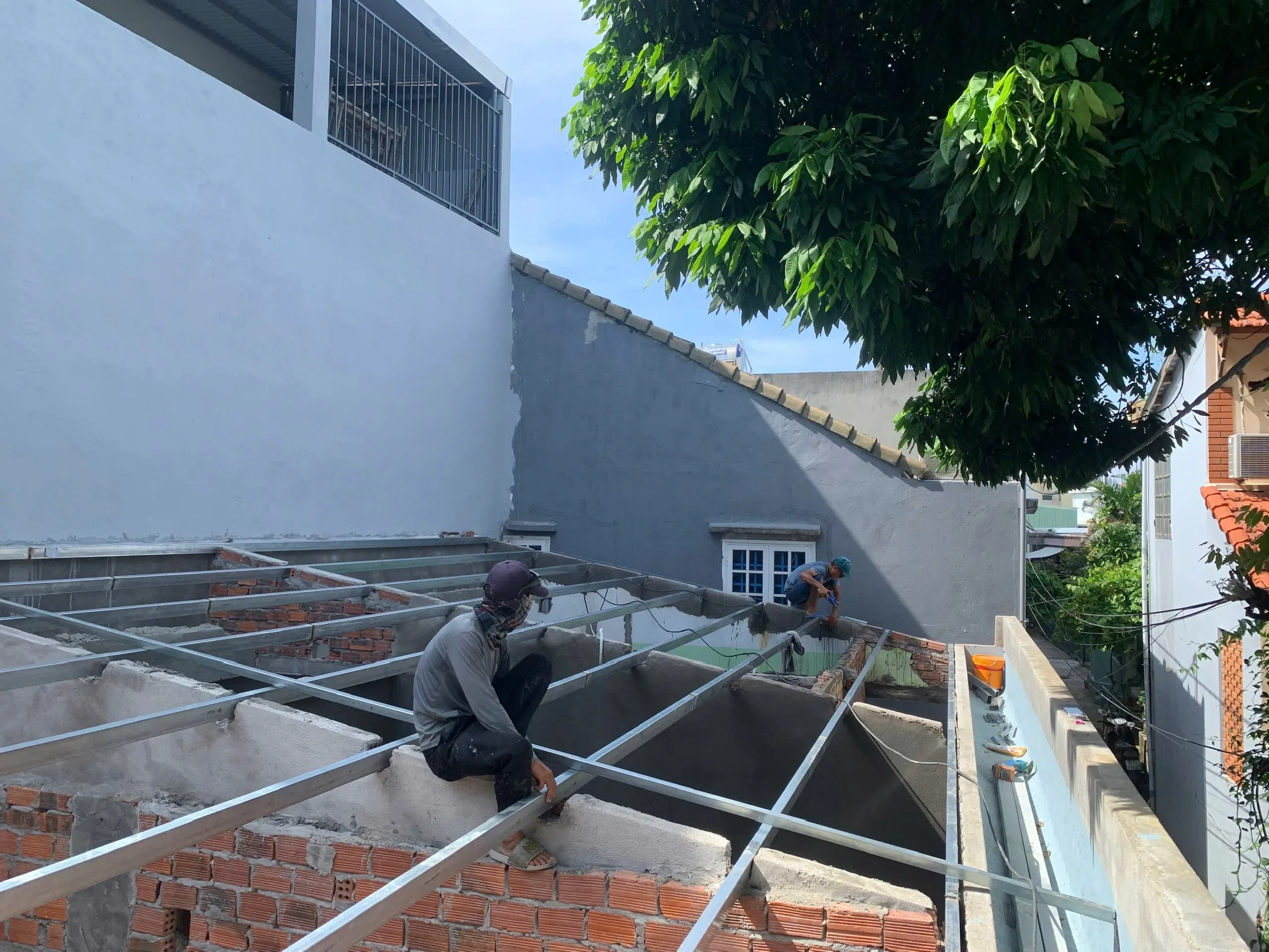 Hoàn thiện mái che sàn tại 29 Thanh Lương 11 cho gia chủ vào ngày đẹp trời