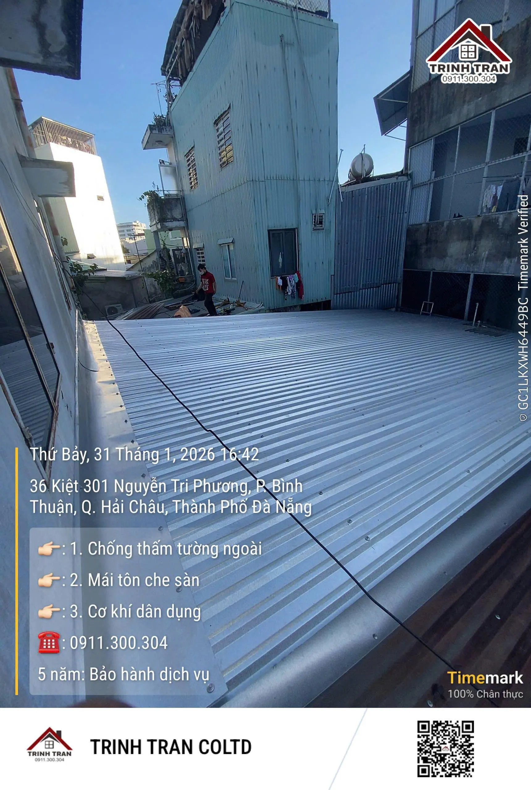 TRINH TRẦN xin chân thành cảm ơn quý chủ nhà tại Hòa Quý đã tin tưởng lựa chọn dịch vụ đóng tôn chống thấm của chúng tôi. Hy vọng giải pháp này sẽ mang lại sự an tâm và tiện nghi cho gia đình trong suốt những năm tới.