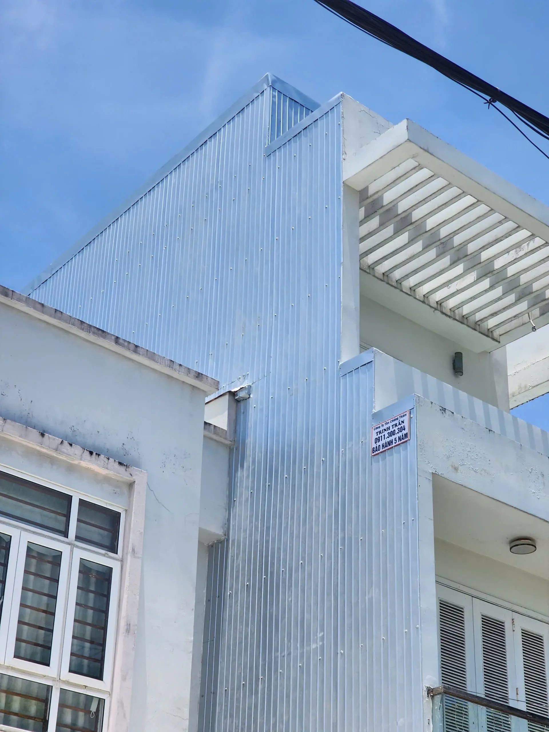 Một trong những giải pháp tối ưu được Trinh Trần áp dụng cho sân thượng cũ hoặc nứt nẻ nhiều. Tấm tôn chống thấm vừa chống nóng, vừa tăng tính thẩm mỹ, phù hợp với điều kiện thời tiết Đà Nẵng.